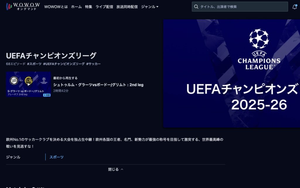 ☆UEFAチャンピオンズリーグ2025-26を観るならWOWOWオンデマンドがオススメ